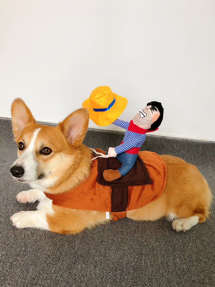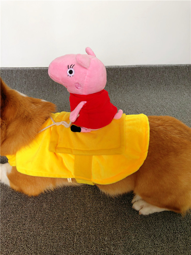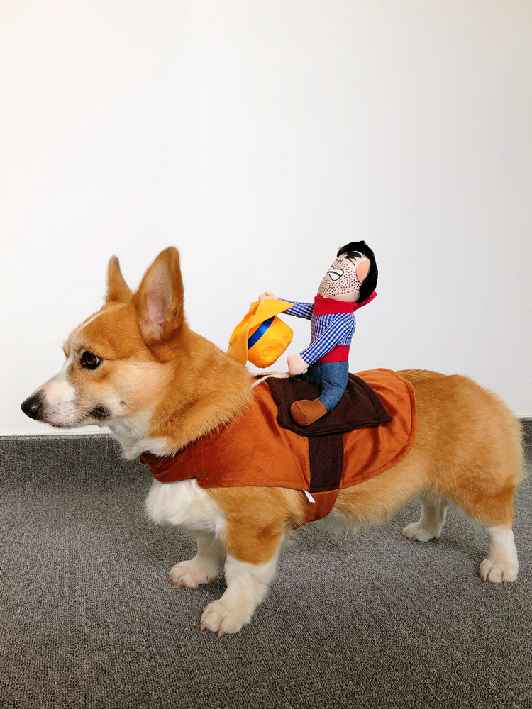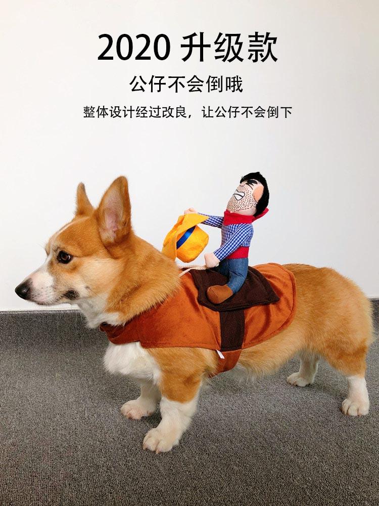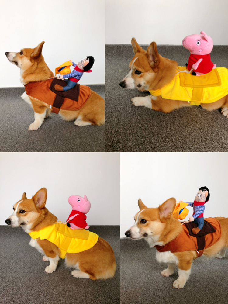 Собака езда в сетевом красном питомце смешной джинсовой рыцарь Корки Тедди Смешная маленькая свинья творческая одежда для собак