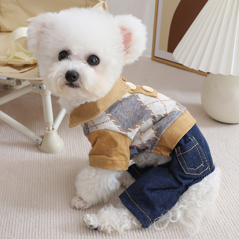 Осенняя и зимняя сшивая четырехдушная одежда для собак зимние щенки, чем медвежое домашнее животное маленькое собачье молоко собака зима теплое одежда