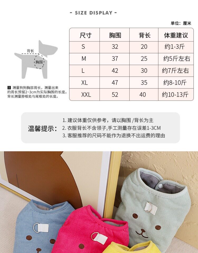 Покалывание хлопчатобумажного жилета собачья одежда осень и зимний питомец плюшевые щенки