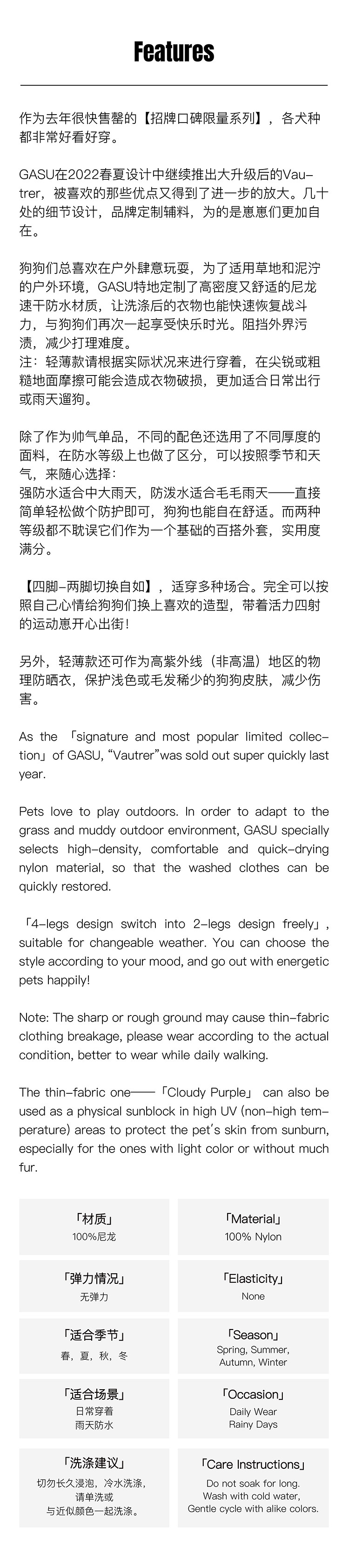 Водонепроницаемая куртка для собак Gasu Vautrer Outdoor Sports может разделить мелкие и средние пластины для любителей домашних животных