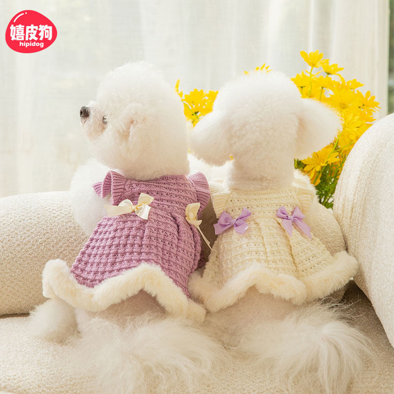 Ручное вязаное платье свитера щенка осень и зимняя одежда Bichonjac Schnauzer маленькая собачья питомец