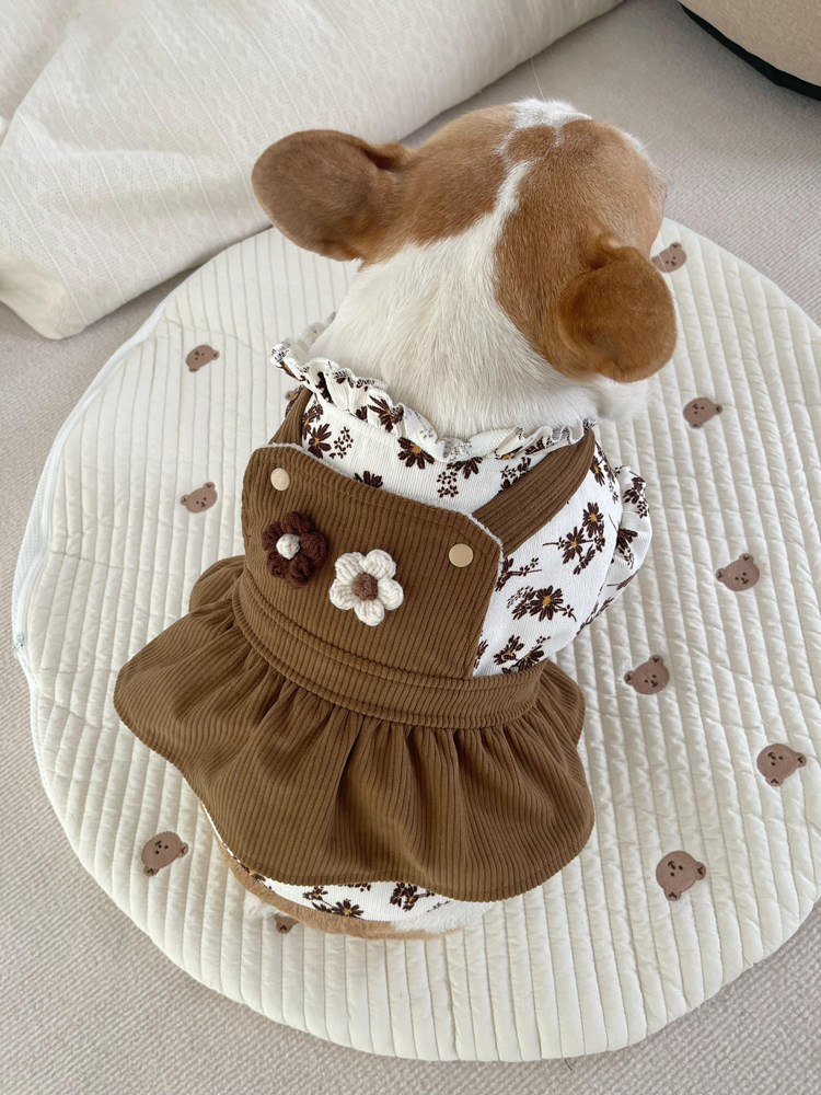 Французская борьба с одеждой Интернет знаменитость собачья одежда весна и осенняя рубашка Пара маленькая цветочная хулиганская хулигана толстая собака бишон