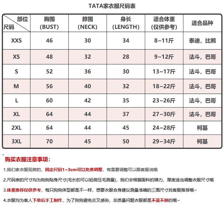 - XXS грудь 46 шеи 30 длина 34 (8 ~ 11 Catties Teddy)