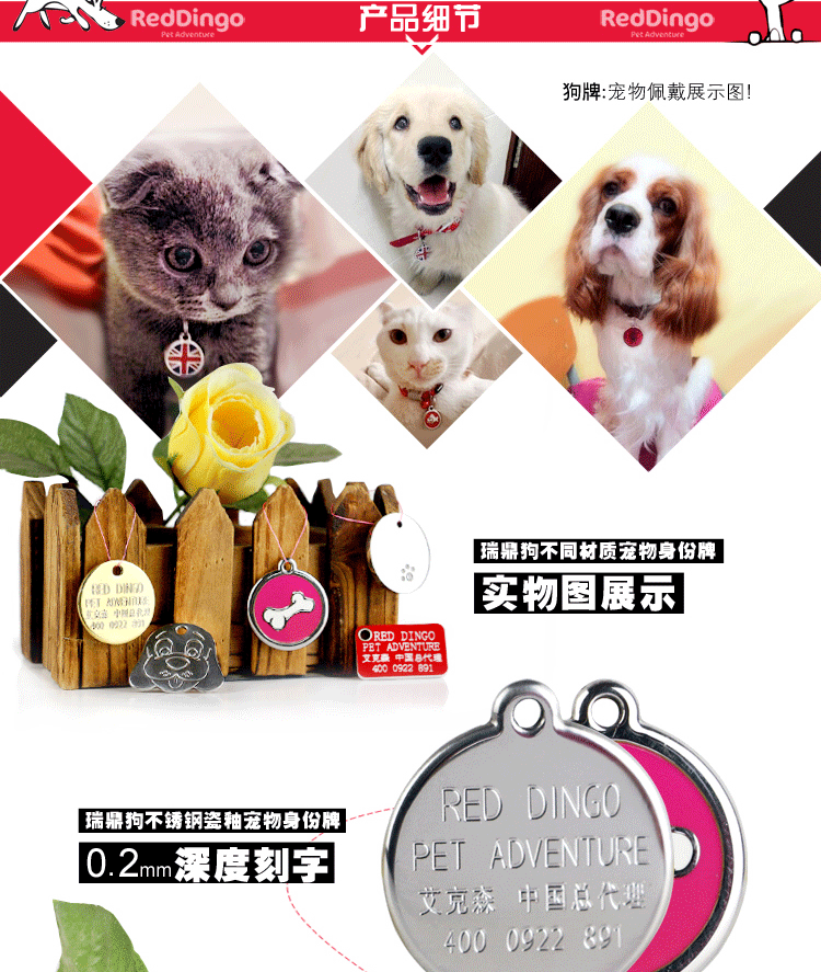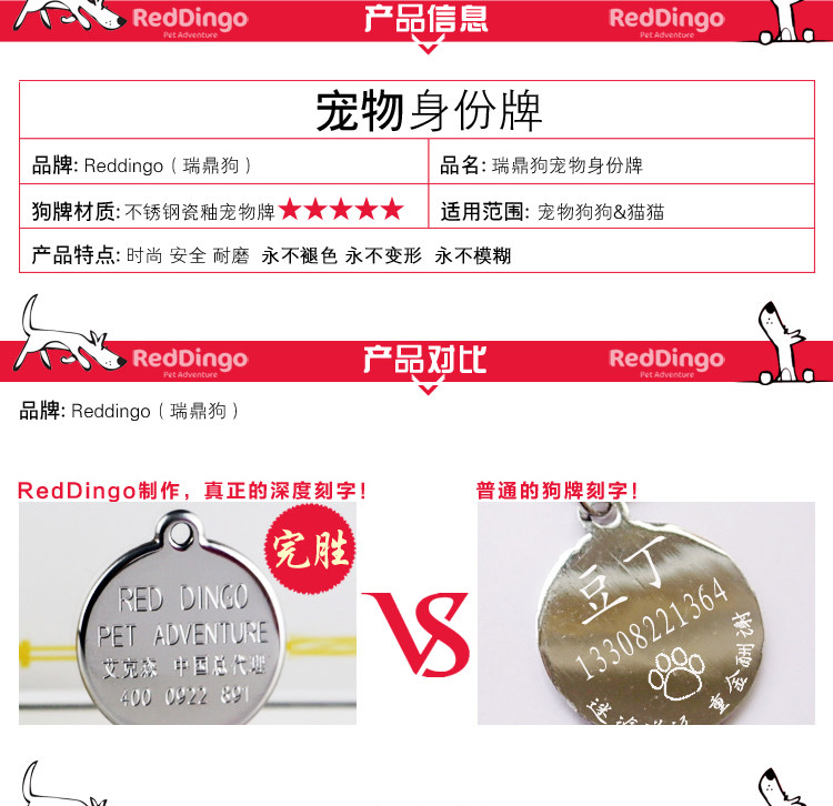 Adejia King Ke Ke - это то же самое, что Reddingo нержавеющая сталь, гравирующая собака, бренд, бренд PET