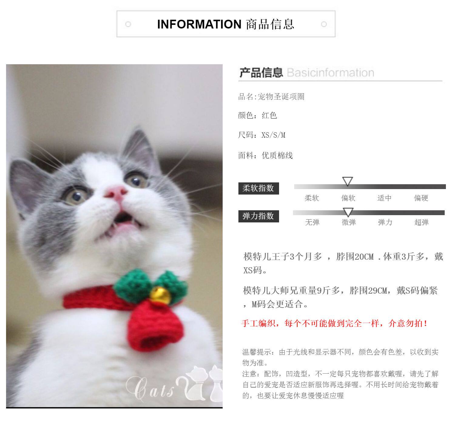 Милый рождественский чокер, шарф, трикотажный колокольчик ручной работы, домашний питомец, кот, котенок, кошки и собаки