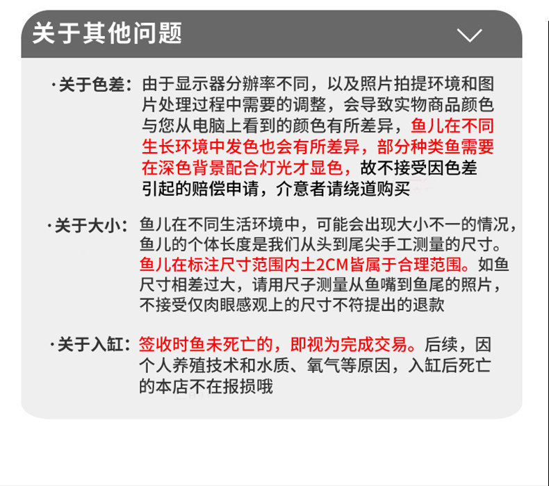 | Цвет: | 5 случайных золотых рыб + 1 случайный для ущерба, 6 в общей сложности, 10 случайных золотых рыб с 4-5 см + 2 бесплатно для потери, в общей сложности 12, 5-7см, 5-7см Красный Лев 1 + Черный Дракон Цин 1 + Красный Пин Хонг 1, 4-6см Кран-Топ 2 красных золотых рыб, 5 Случайных золотых рыб 6-8 см дают 1 бесплатно за ущерб., Золотая рыбка набор 1 (3-5 см), 6 пунктов пакета значений 6-8 см., 9 пунктов пакета значений 6-8 см., 12-13см, 8-9см Кран-вершина красная золотая рыбка 2, 10-12см, Большой красный лев 12-15 см + 1 красный и белый лев, 11-13см, 10-12M красная таблетка + 1 черный дракон солнечный, 6-8см, 8-9 см Красный Дракон Цин 1 + Черный Дракон Цин 1, 18-19см, 8-10см, 6-8 см Lanshou Goldfish 2, 5-7см Jade Rabbit 2+Thai Lion 1, 6 случайная золотая рыбка со смешанным цветом 10-12 см, 5-7см |
