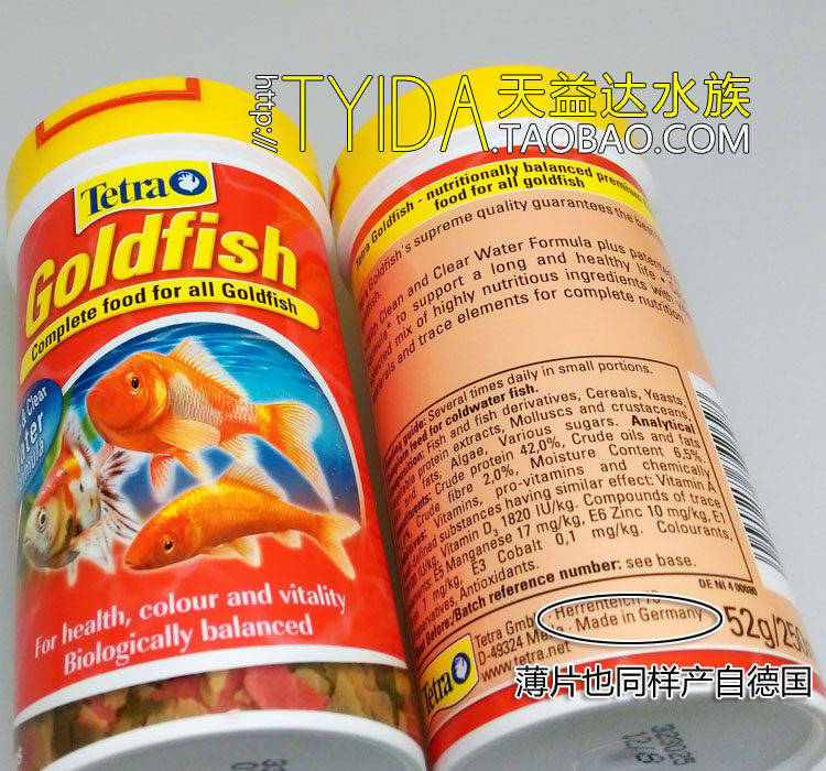 Германия импортированная золотая рыбка Тонкие кусочки сбалансированного питания с питанием с высоким расщеплением и поглощающие рыбные продукты тетры распределяются