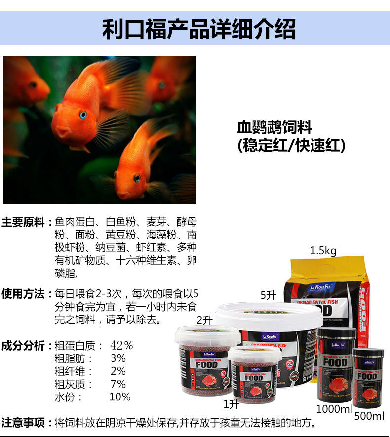 利口福 Попугающая рыба кормление увеличивает красный цвет, богатые рыбные продукты тропическая рыба и зерно -попугая декоративные рыбы кормления кормления