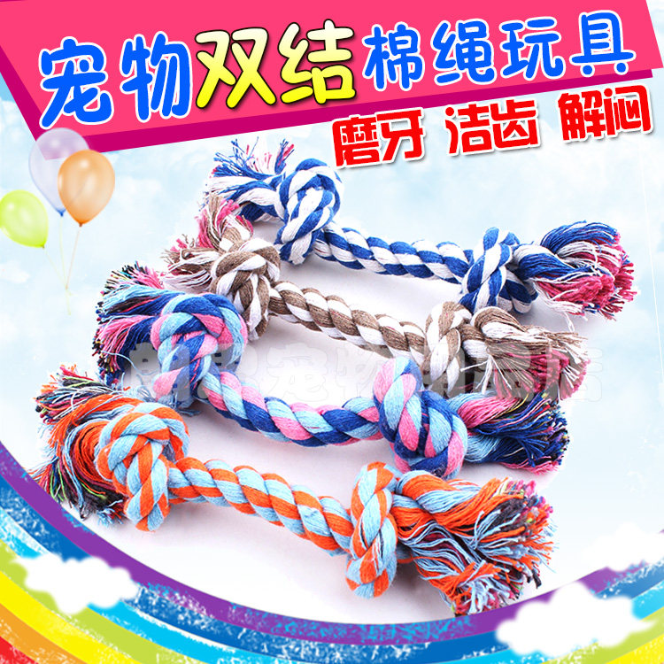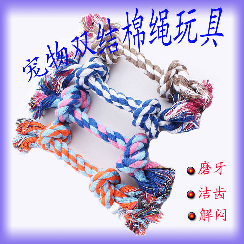 ПЭТ -хлопчатобумажная веревка Двойная хлопчатобумажная веревка (чистка веревка) изготовлена из цвета хлопковой веревочной кости. Кость кости завязана машина, которая не будет легко укусить или разобрать домашним животным. Желудочно -кишечный шрифт и кишечник также имеют эффект очистки зубы.