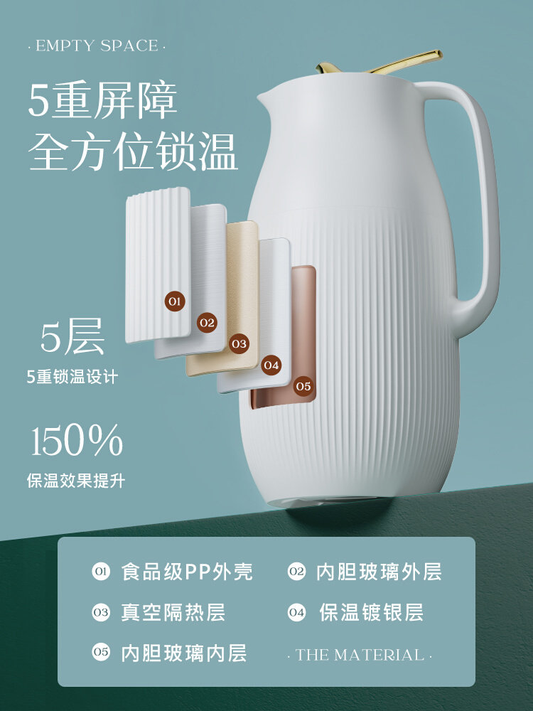 Вакуумный термос, стеклянный вместительный и большой чайник