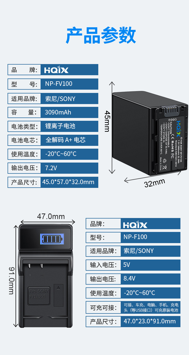 HQIX подходит для Sony HDR-CX700E CX180E TD20 камера NP-FV100 Аккумулятор зарядного устройства