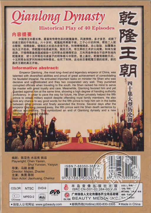 Подлинные 40 эпизодов сериала «Династия Цяньлонга» 6DVD D9 Версия в твердом переплете Джао Хуан Чен Руи Историческая драма