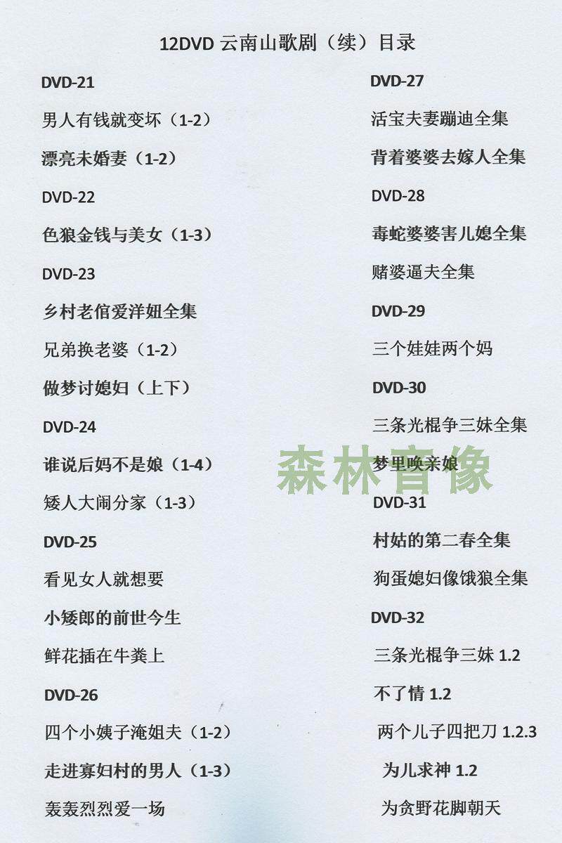 Упакован в компакт -диск 1 Всего 12 DVD-дисков с короткими пьесами народных песен Юньнани, телесериалами и пьесами большой емкости, все доступны в одном месте.