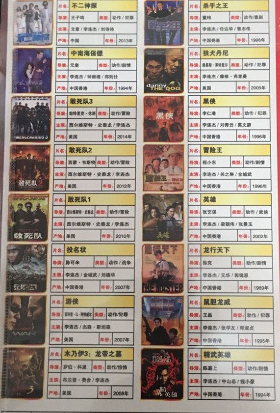 Jet Li Action Movie Complete Works DVD Disc Discested/Jingwu Hero/Adventure King 16