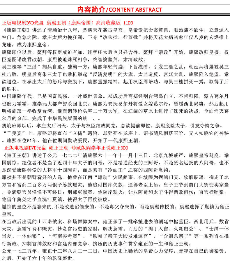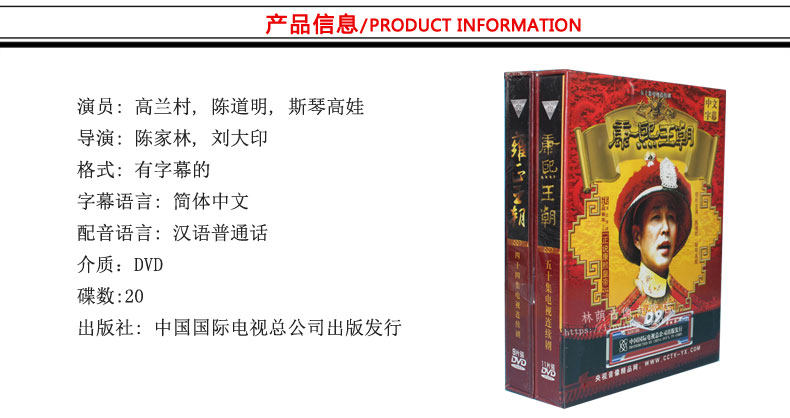 Подлинный телесериал CD династии Канси (империя Канси)+Династия Юнжженга 20DVD, 9 Chen Daoming
