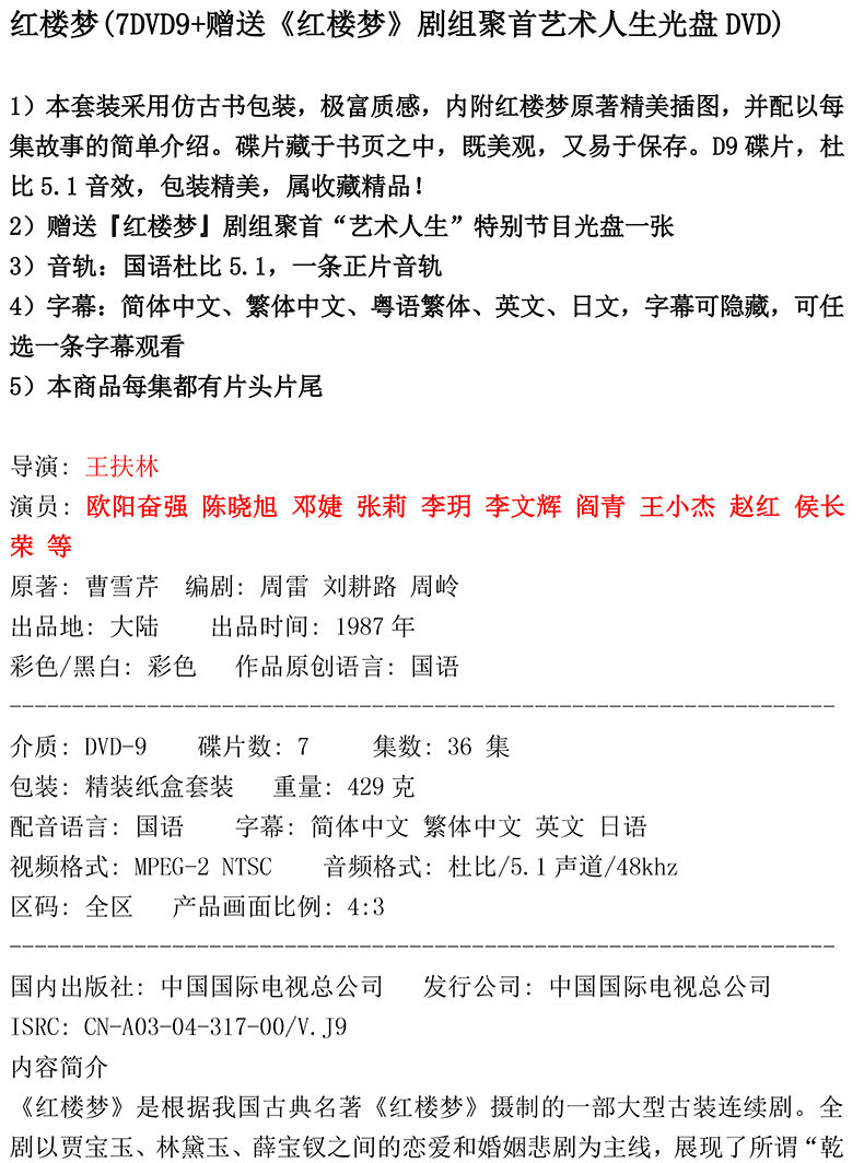 Подлинное сериал CD Classic CCTV 87 версия Red Mansion Dream 7DVD9 HD Collection Edition