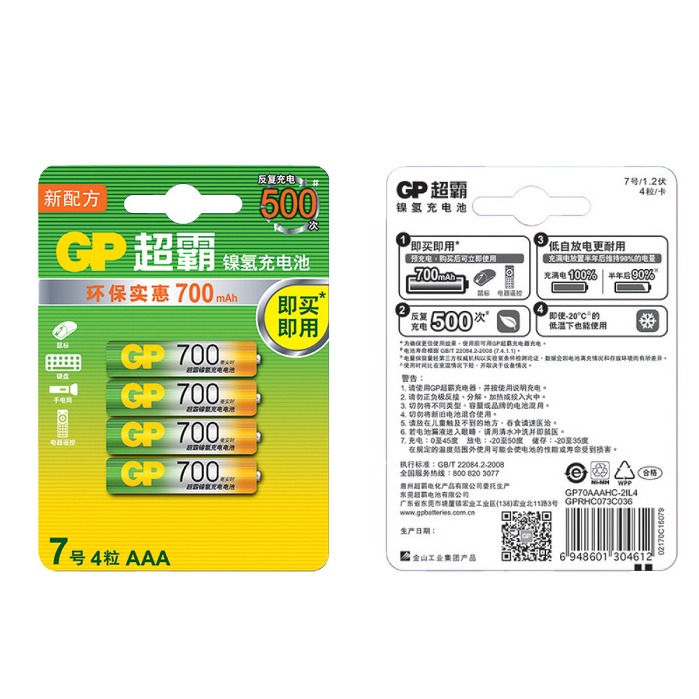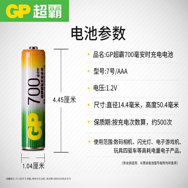GP Superba № 7 Перезаряжаемая батарея AAA № 7 700 MAH -NICKEL -Hydride CAN CAN CAN НЕОБХОДИМОМОГО НАМЕМОРИЧЕСКИЙ Эффект, утилизацию, воздушное кондиционирование, дистанционное управление телевизором, домашний детский аккумулятор для игрушек -батарея воздуха.