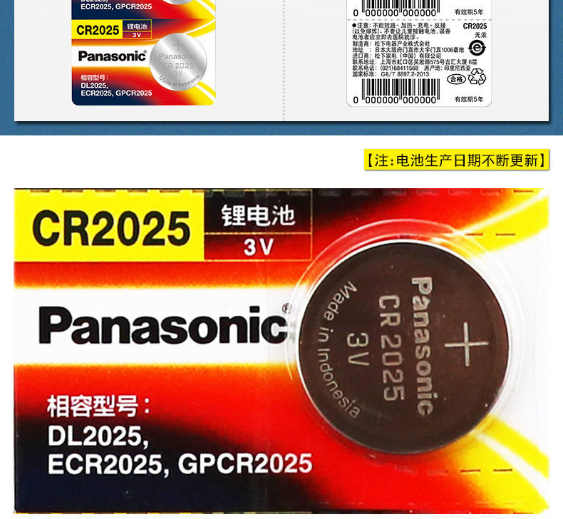 Батарея кнопки Panasonic CR2025 подходит для Mercedes -Benz Golf 7 Carnival Angkara Tiguan L ATZ Nissan Blue Bird New Pokémon 3V Электронный мотор -ключ пульт дистанционного управления 10 капсулы