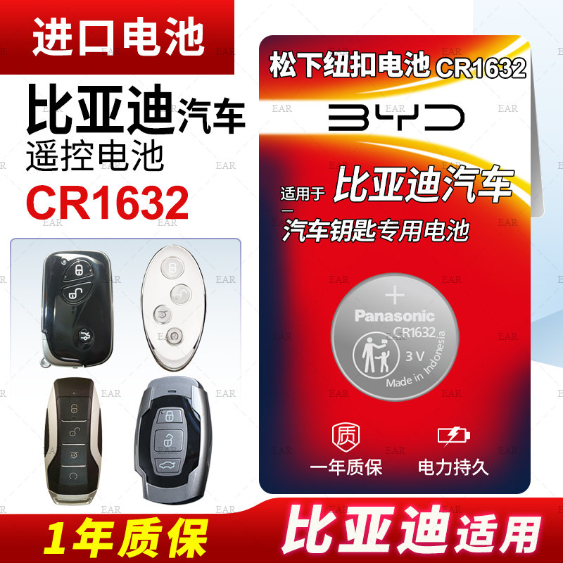 Применимо к Byd Qin и Tang Dynasties Ключ пульт дистанционного управления, батарея, батарея CR1632 Panasonic Imported Byd Song Max Electric