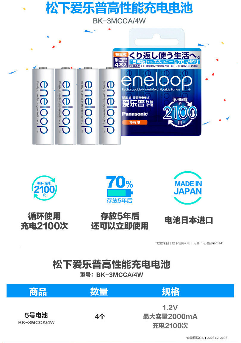 Panasonic Eneloop Sanyo Elipper High Performance 5 4 Циклическая перезаряжаемая батарея KTV Беспроводной микрофон для микрофона может выбрать № 7 никель -гидрид № 5 может промывать батареи в Японии, импортированные