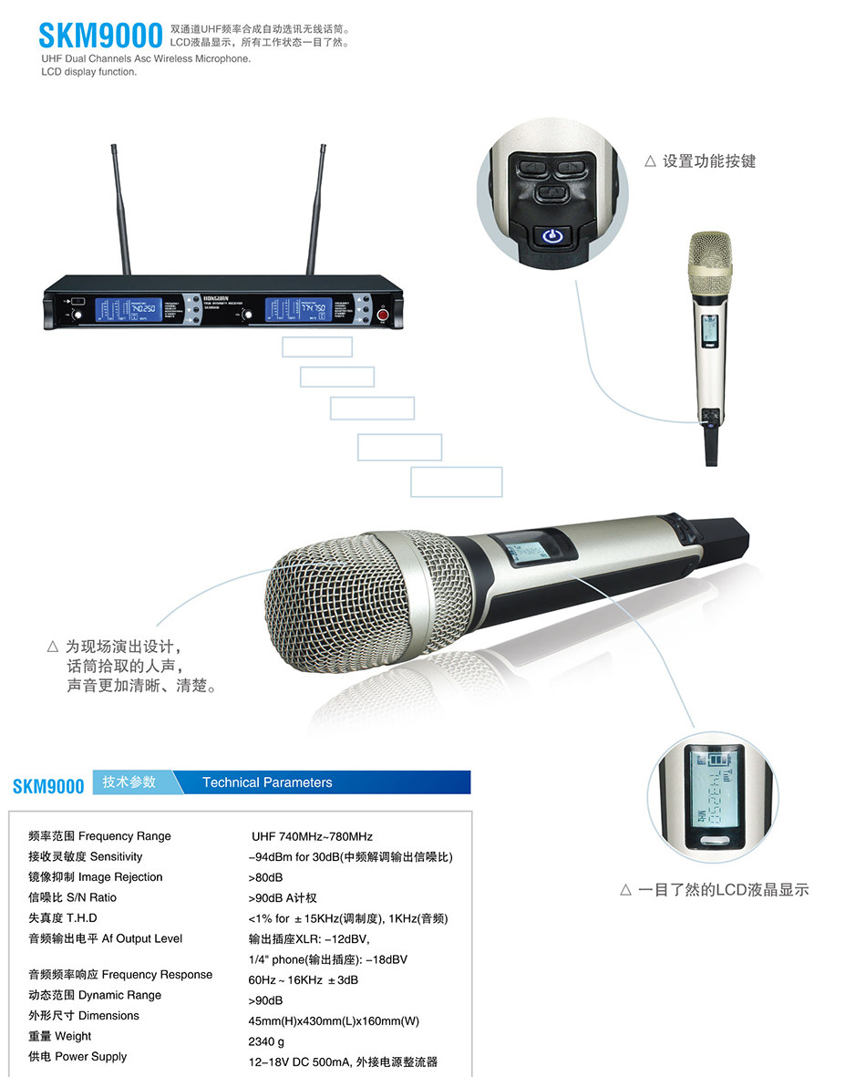 - Четыре антенны реальное разнообразие SKM9000 Handheld