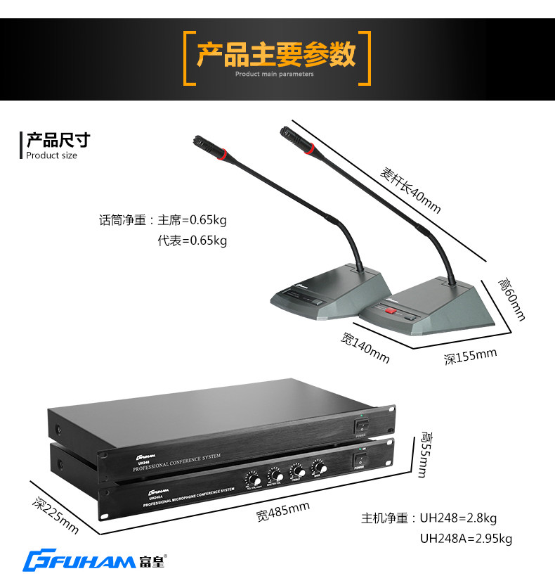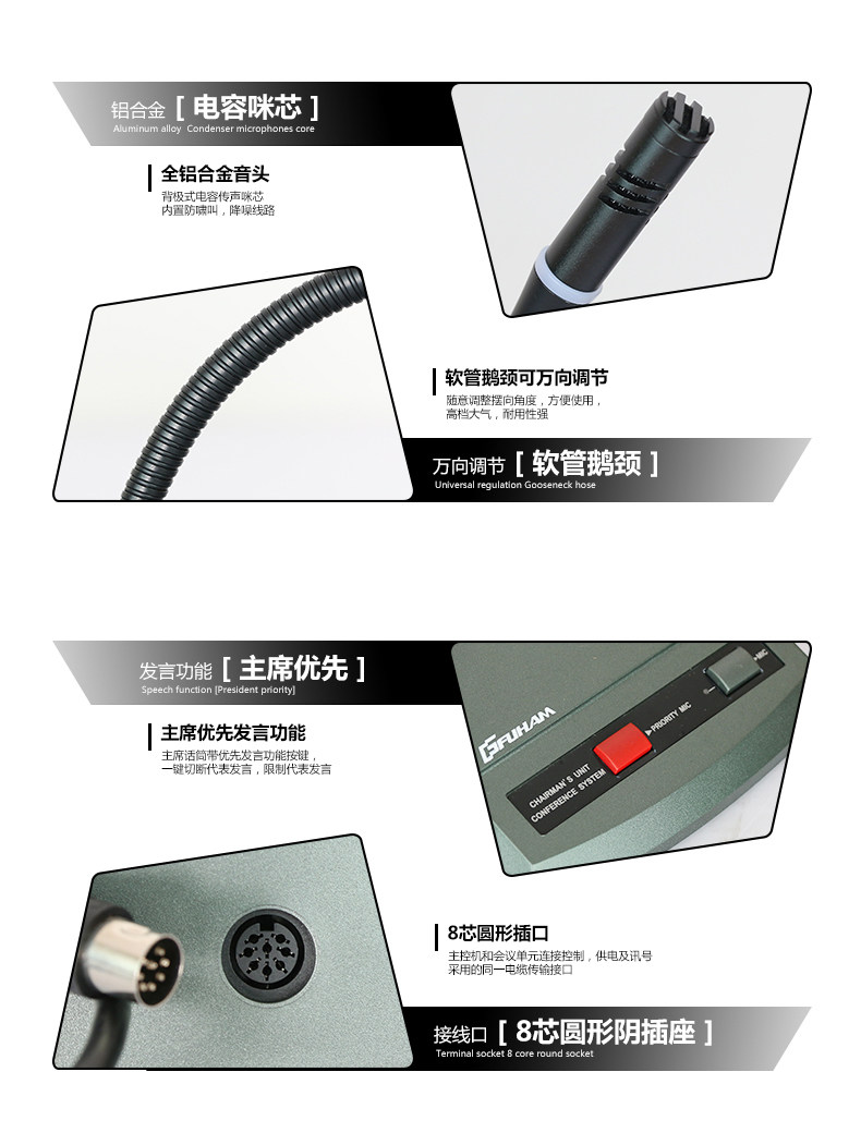 富皇 UH248 Кабельная рука -ручная конференция конференц -микрофона Микрофона Гус -Шея Настольный конденсатор председатель собрания заседания Микрофон Микрофон