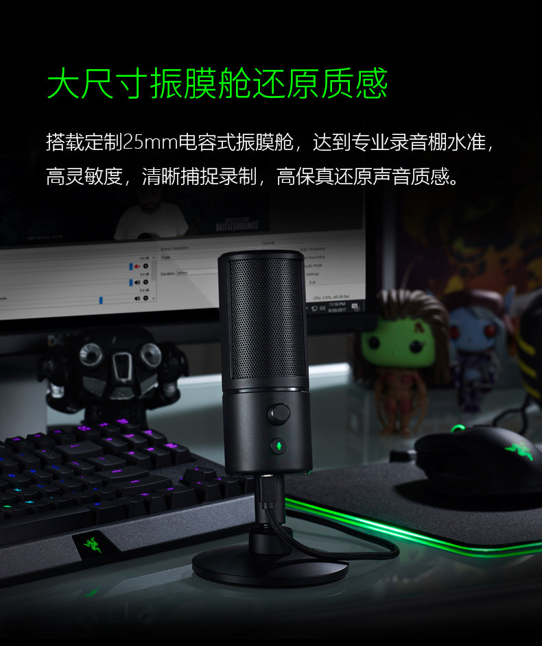 Razer Razer Magic Sound Siren x Pink Crystal Mercury Microphone Computer Game E-Sports Anchor Live Microfone Equipment