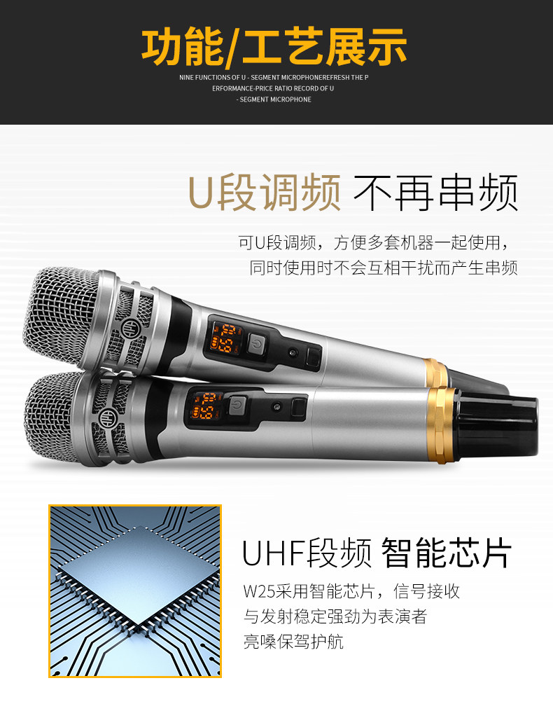 钻石 W25 Домашний беспроводной микрофон 1 Перетащите два майора KTV Singing U -Section Частотная частота Home Усилитель мощности k Микрофон песни Microphone