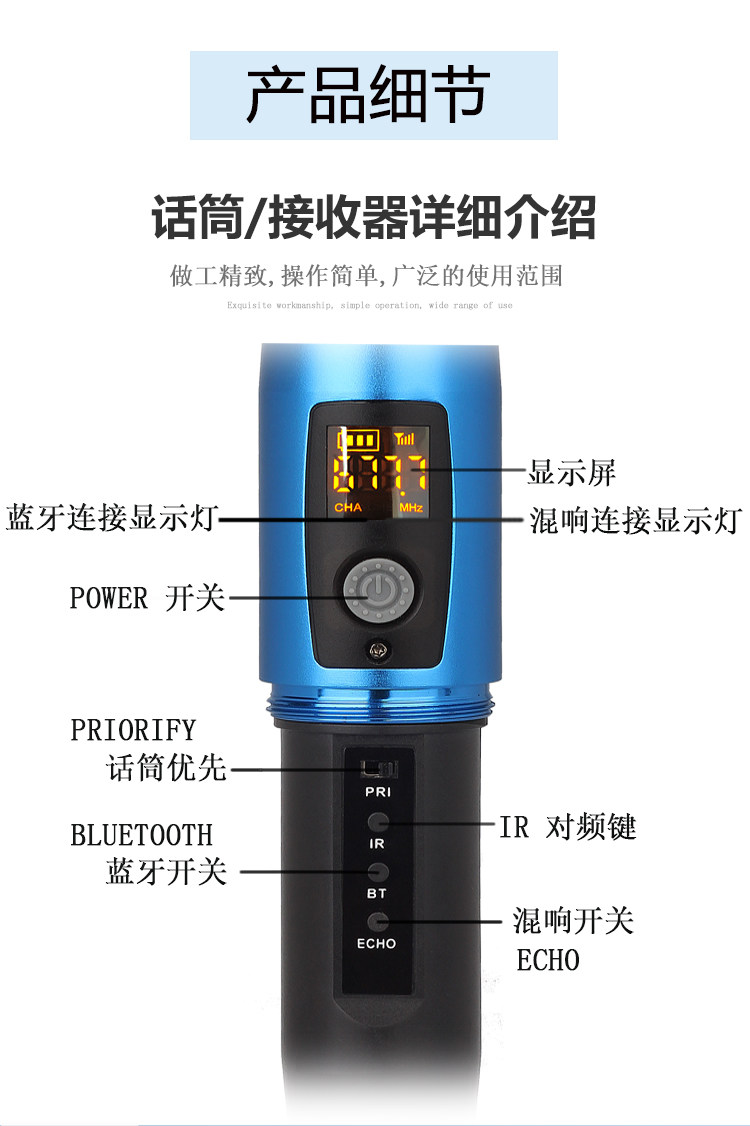 Универсальный беспроводной цельнометаллический дорожный профессиональный микрофон