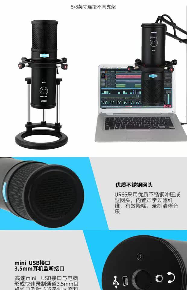 Alctron/ekchuang ur66 онлайн класс Live Voice Chat usb емкостный микрофон K Цилиндр записи песни цилиндр