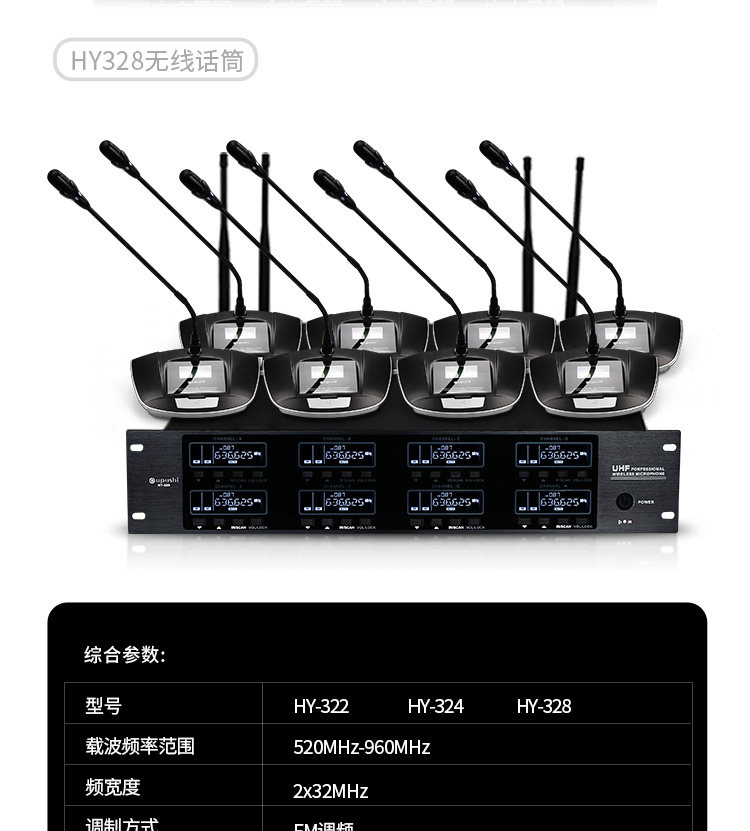 Upupushi Hy324 Беспроводная конференц -микрофон U -сечение может регулировать частотный микрофон, одно сопротивление, два/4/восьмое собрание