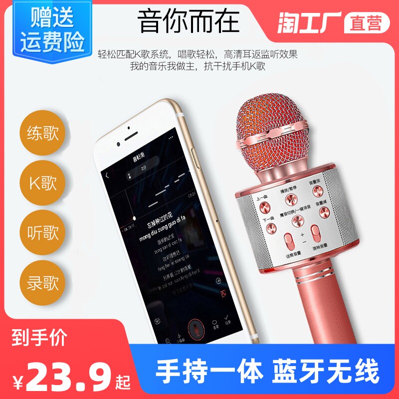 Микрофон все -In -одна микрофон мебель беспроводной Bluetooth Children K Ge звуковая карта звуковая карта Karakara ok Live