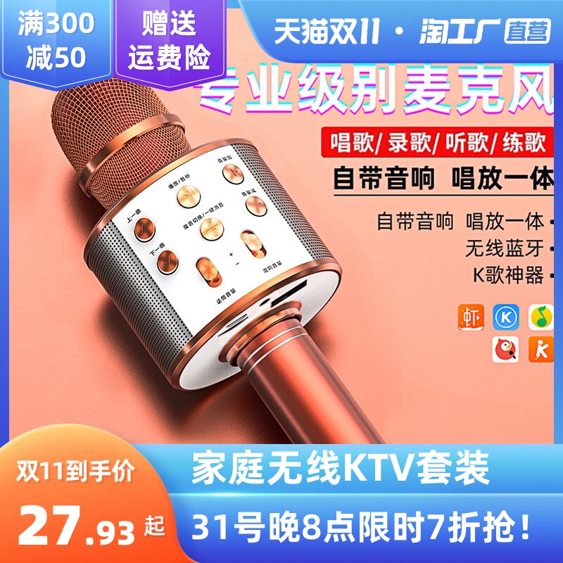 Беспроводная национальная K Song Tube Audio Audio Bluetooth Mike Детский дом Специальное телевидение пение ktv artifact изменения