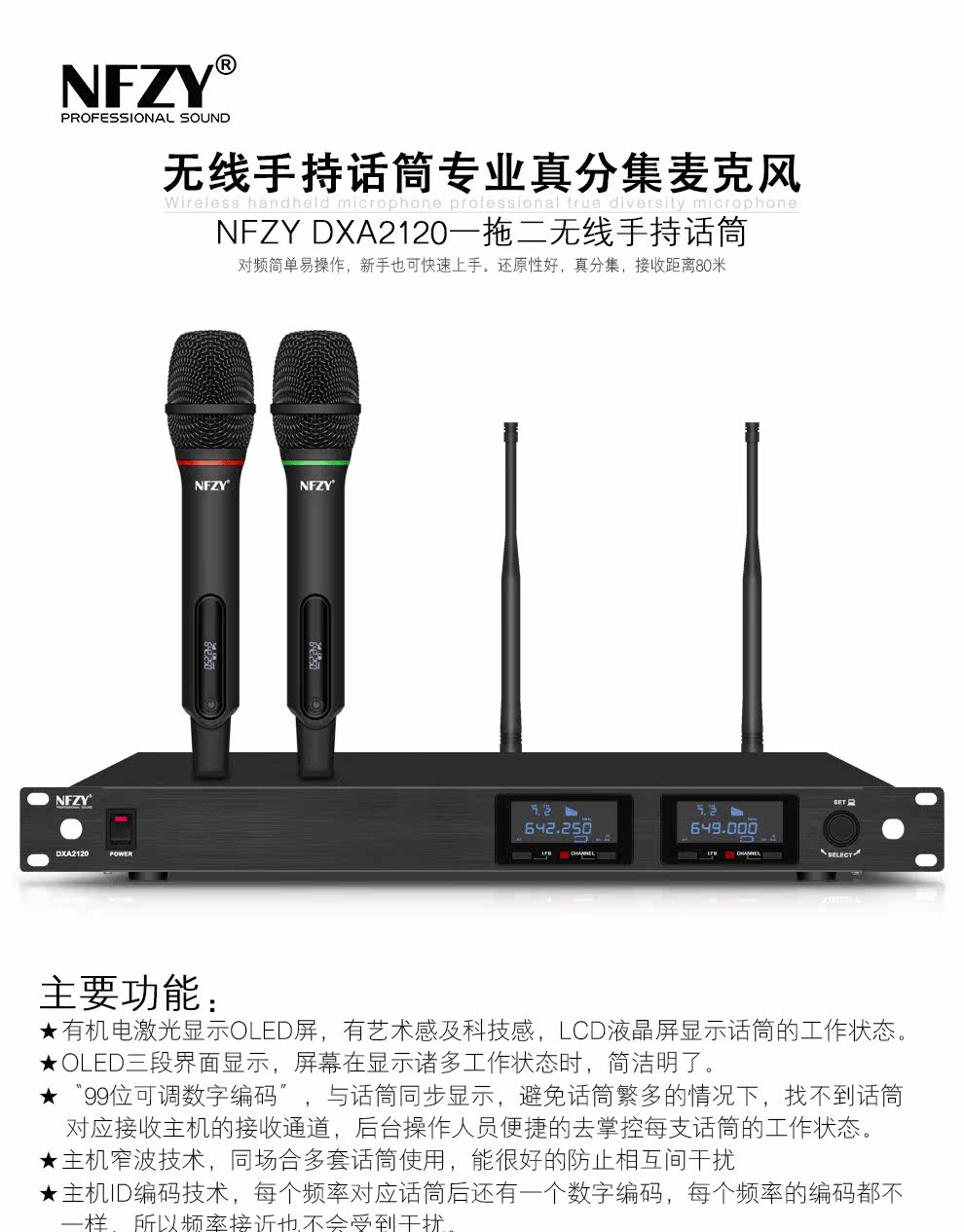 NFZY DXA2120 Professional Division One Drag The Wi -Wiper Handheld Meeting Performance KTV Микрофон