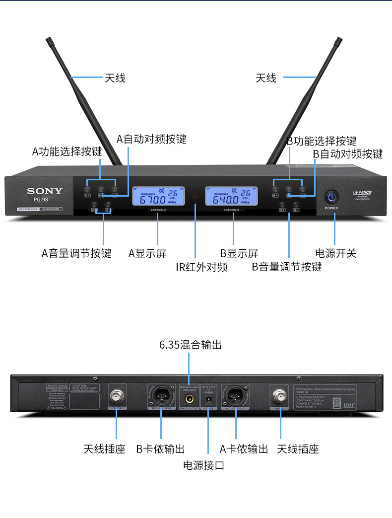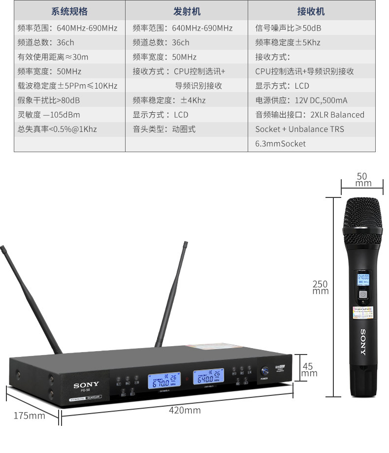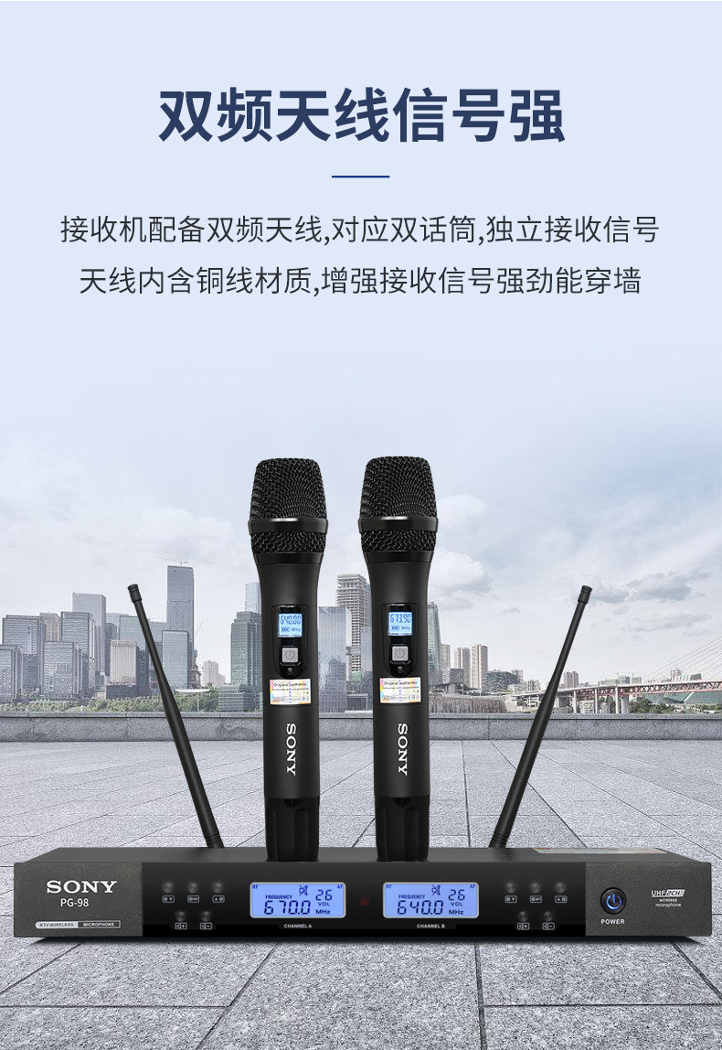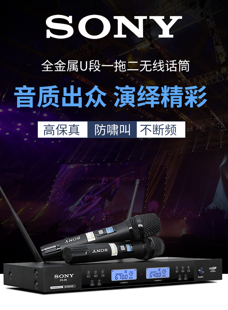 Sony Wireless Microphone Professional Home использует караоке, чтобы петь KTV Outdoor Special U -Сегмент Частота регулировки одного перетаскивания два микрофона
