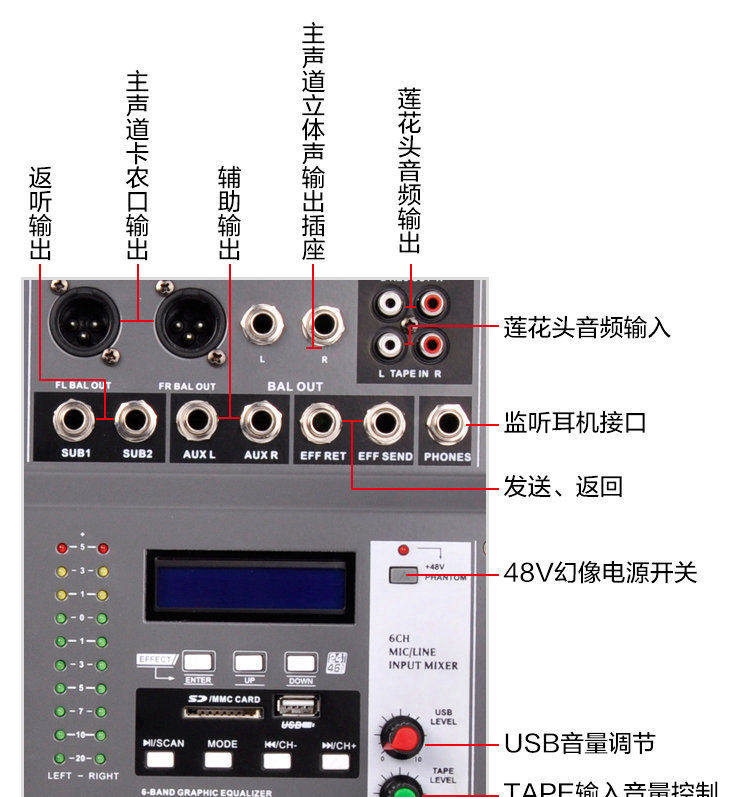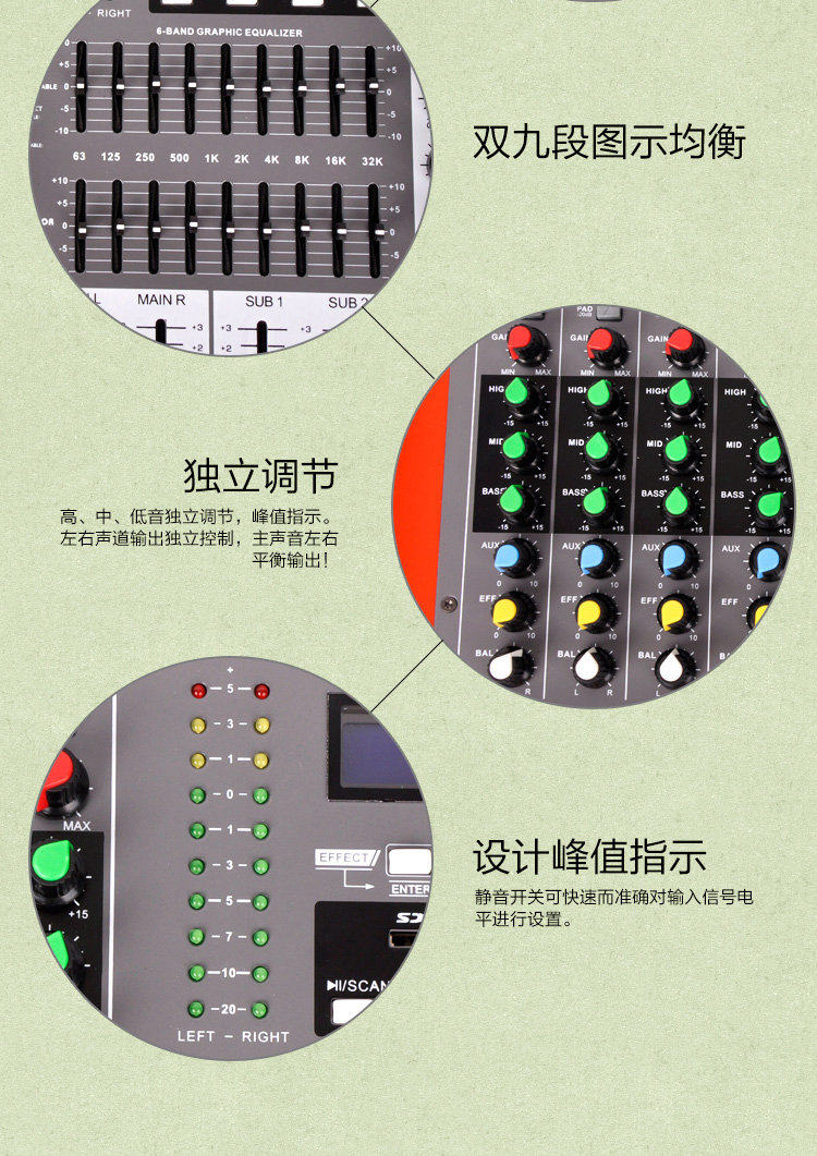 Weidor Professional 6 -Road Mixing Рассчитайте портал All -In -Road High -Sower KTV Audio 69 DSP эффекты