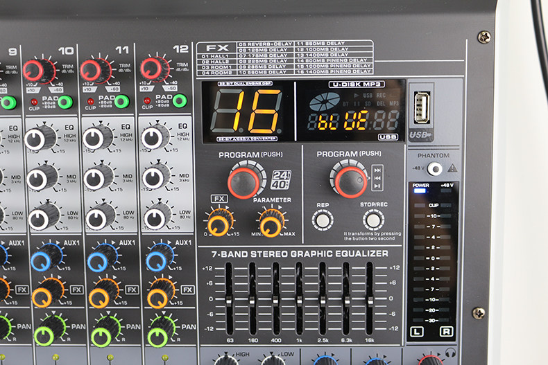 Профессиональные сценические исполнители 6/8/12 исполнили эффект Bluetooth Home Bars, уравновешивая USB -встроенный миксер DSP