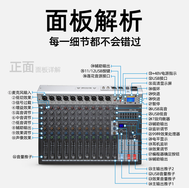 Профессиональная производительность 8th Road 12 смешивание Dalfers Bluetooth USB функция 99 модель модели модели концентрации Свадебная конференция