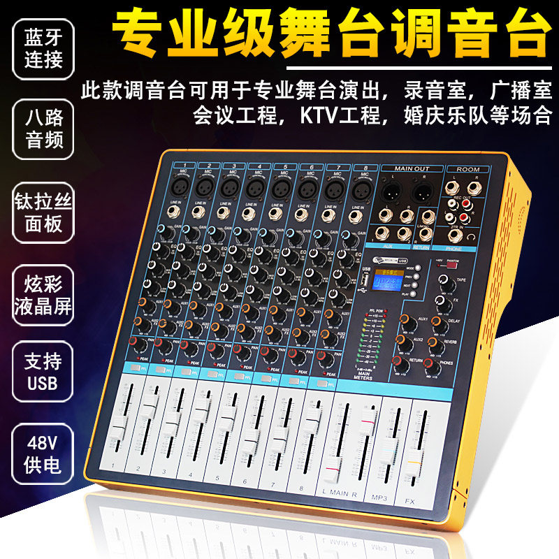 Профессиональная 8 -часная настройка Станция U Диск Bluetooth Mp3 Play Multi -функциональная полоса эффект реверберация конференция USB Socket