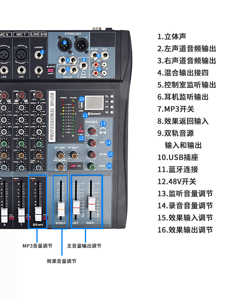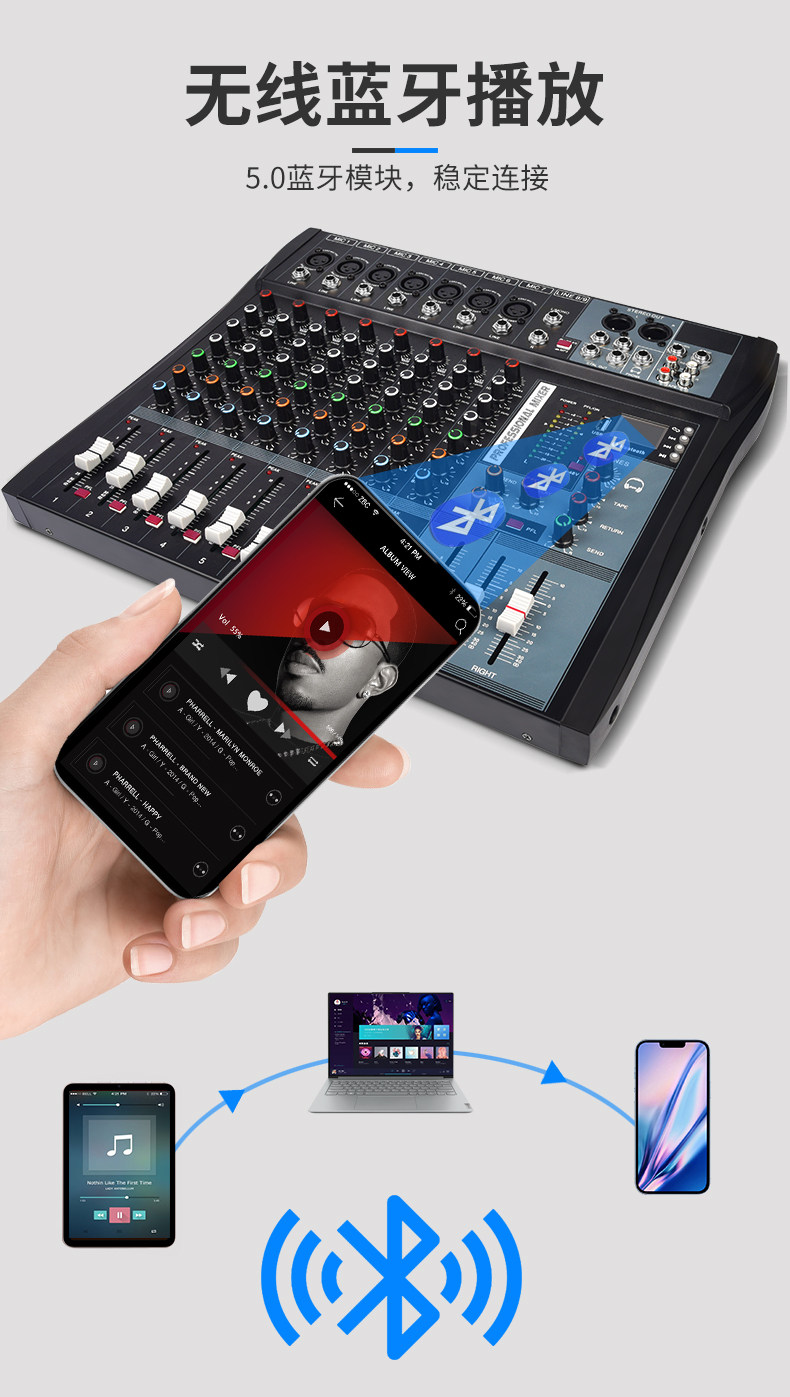 CT-80S Профессиональный Bluetooth USB-микшер KTV Сценический спектакль Свадебная конференция Домохозяйство Реверберация Эффект