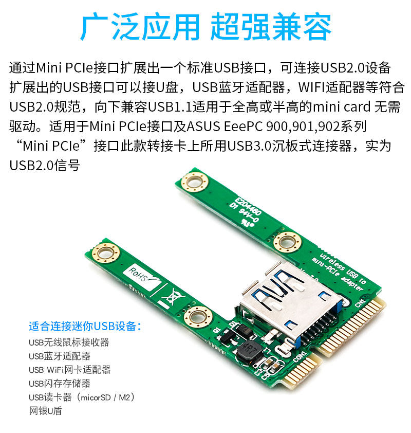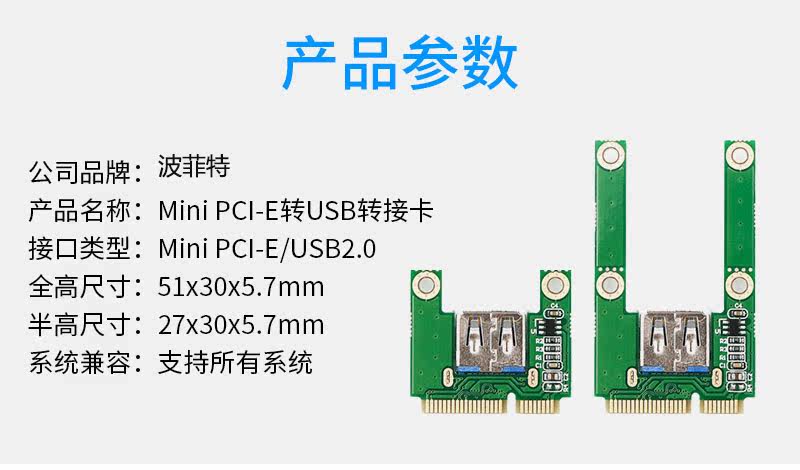 Mini PCIe Extension USB2.0 Интерфейс Mini PCI-E в USB Card Card Card Half-High/Highpurpose