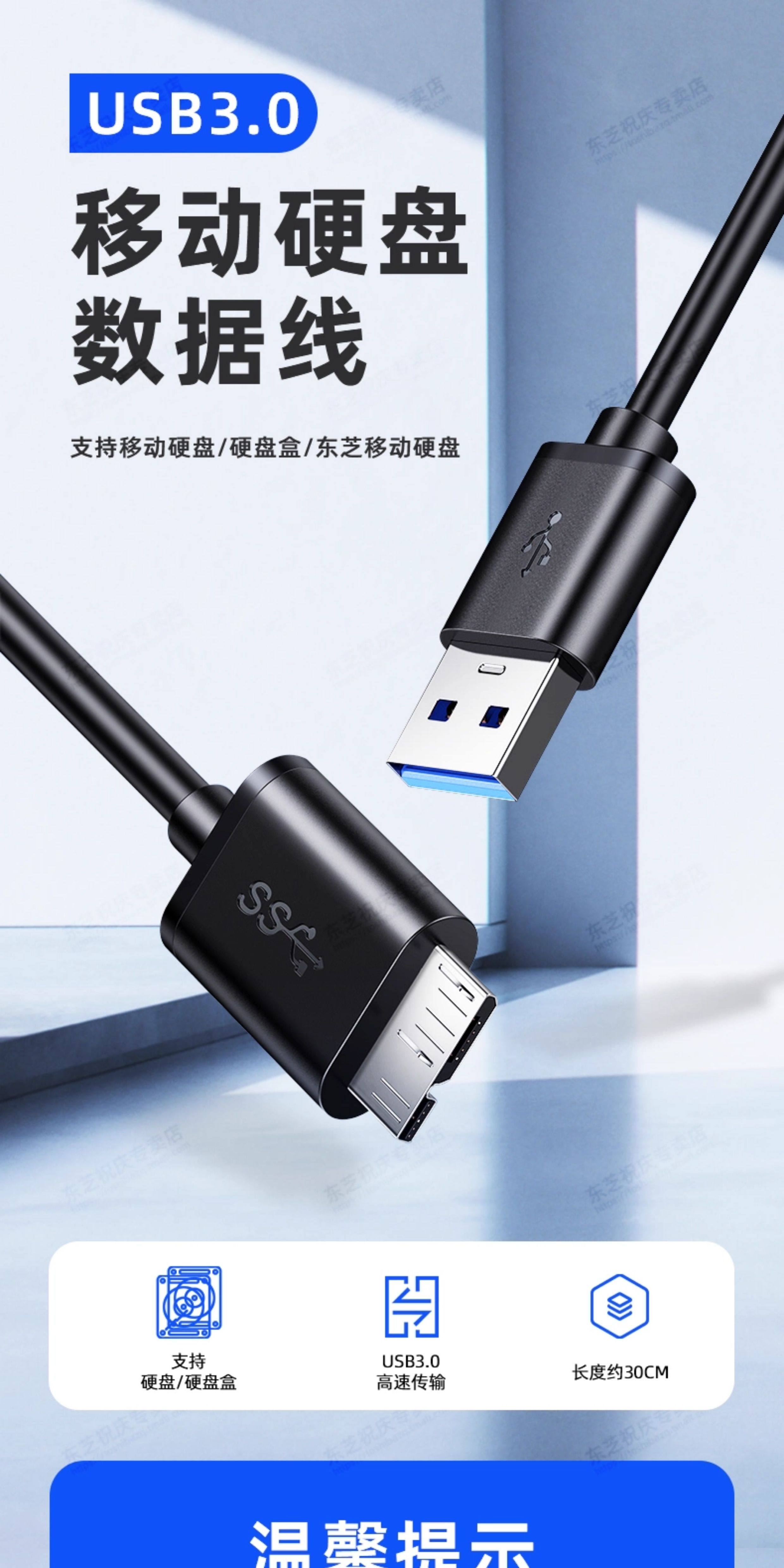 [USB3.0 Мобильный кабель данных жесткого диска] Мобильный жесткий диск универсальный кабель данных USB3.0 составляет около 30 см.