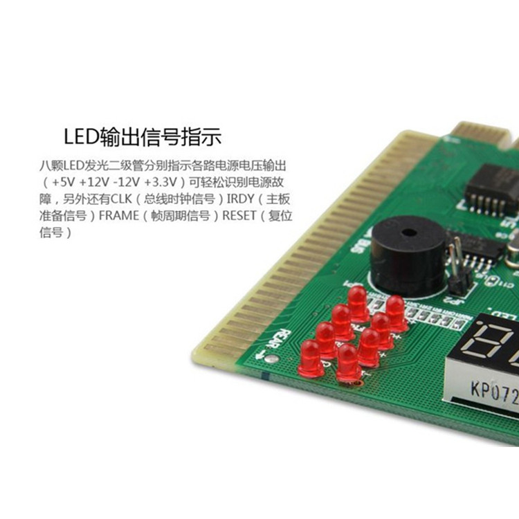 Цифровые трубки, чтобы отобразить причину неисправности, и иметь пчелгера.Работа материнской платы была ясной с первого взгляда.Следовательно, диагностическая карта PI50E не требует, чтобы материнская плата запустила индикаторный свет.