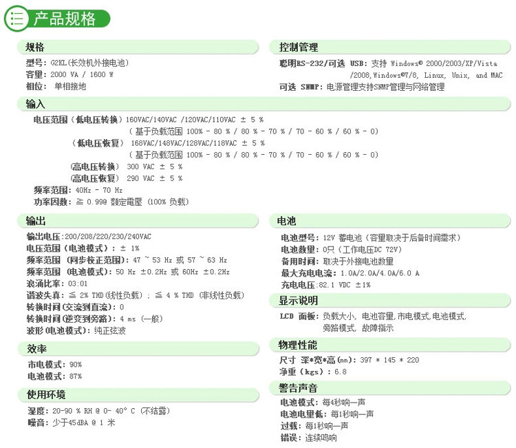 Reyle G2KL 2KVA онлайн (онлайн) UPS UPS непрерывно