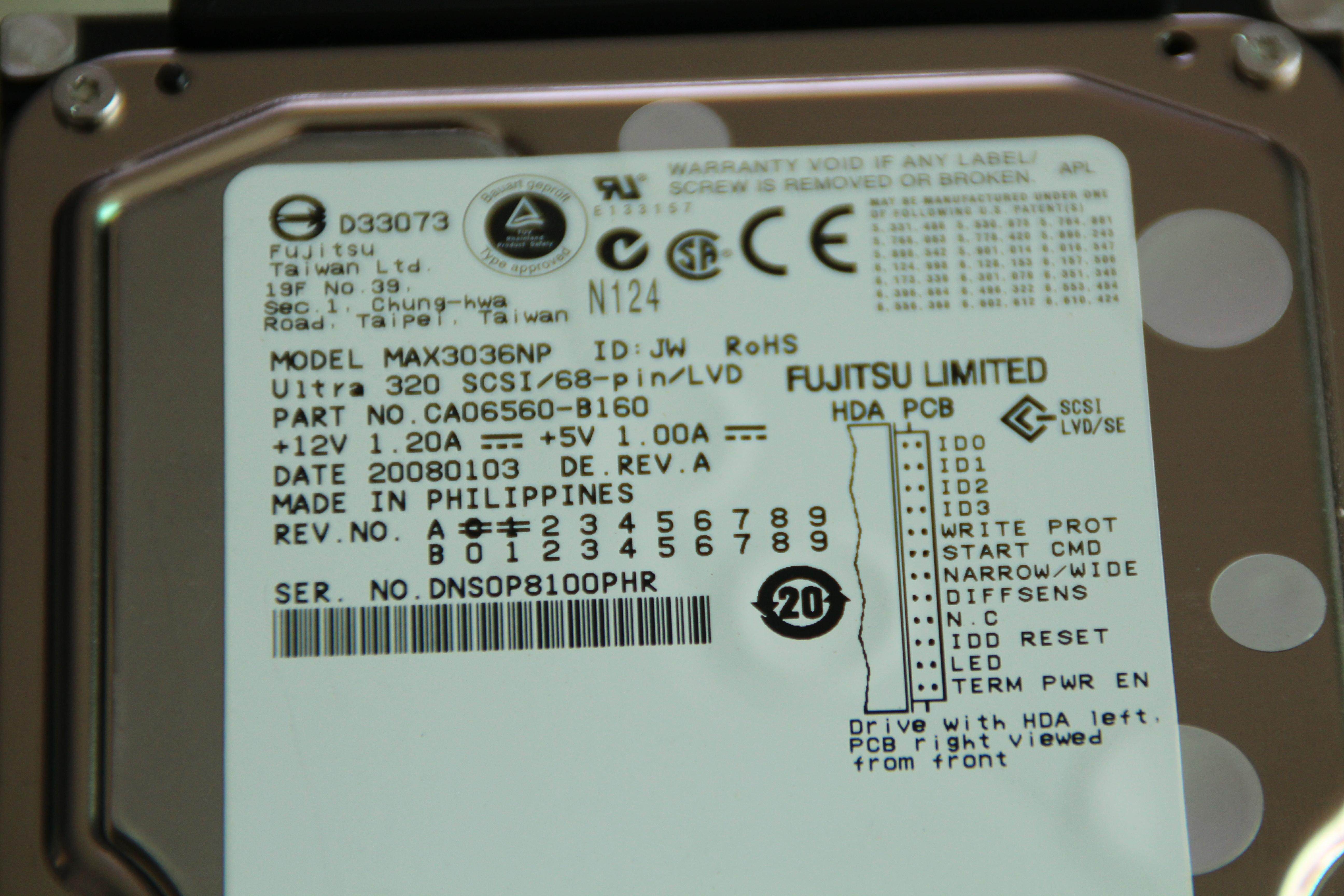 Fujitsu 68 -pin SCSI жесткий диск 36G/36 ГБ Fujitsu MAX3036NP 15K U320 68p