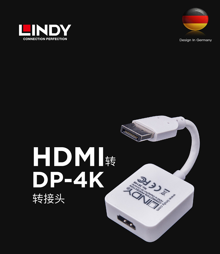 Немецкая Lindy HDMI в DP преобразователь 4K HD -проекционный адаптер преобразователя преобразователя