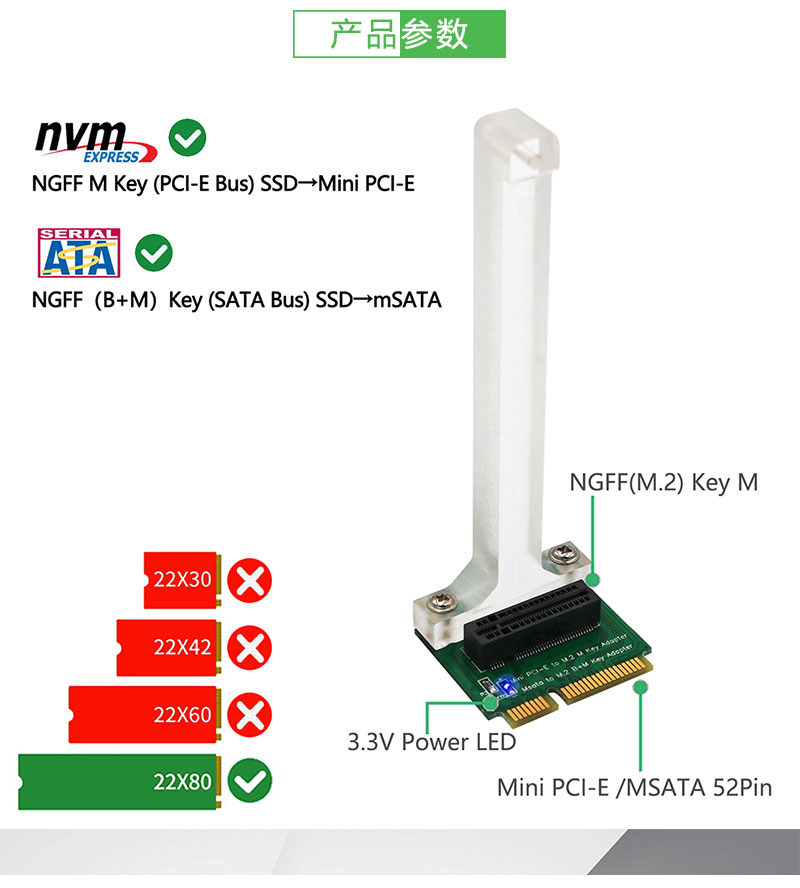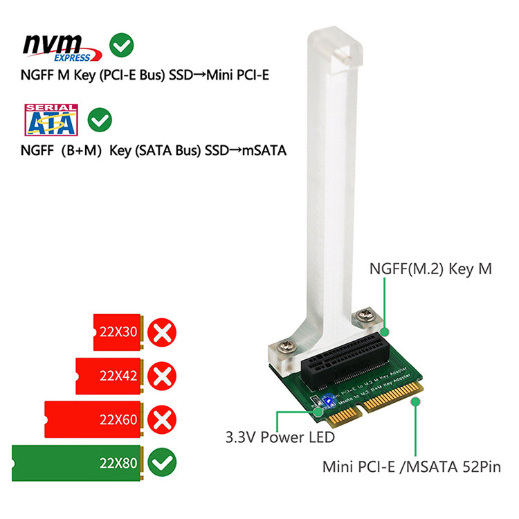 Mini PCI-E к M.2 NVME SSD шина вертикальной карты преобразования, MSATA к M.2 Ключ B+M
