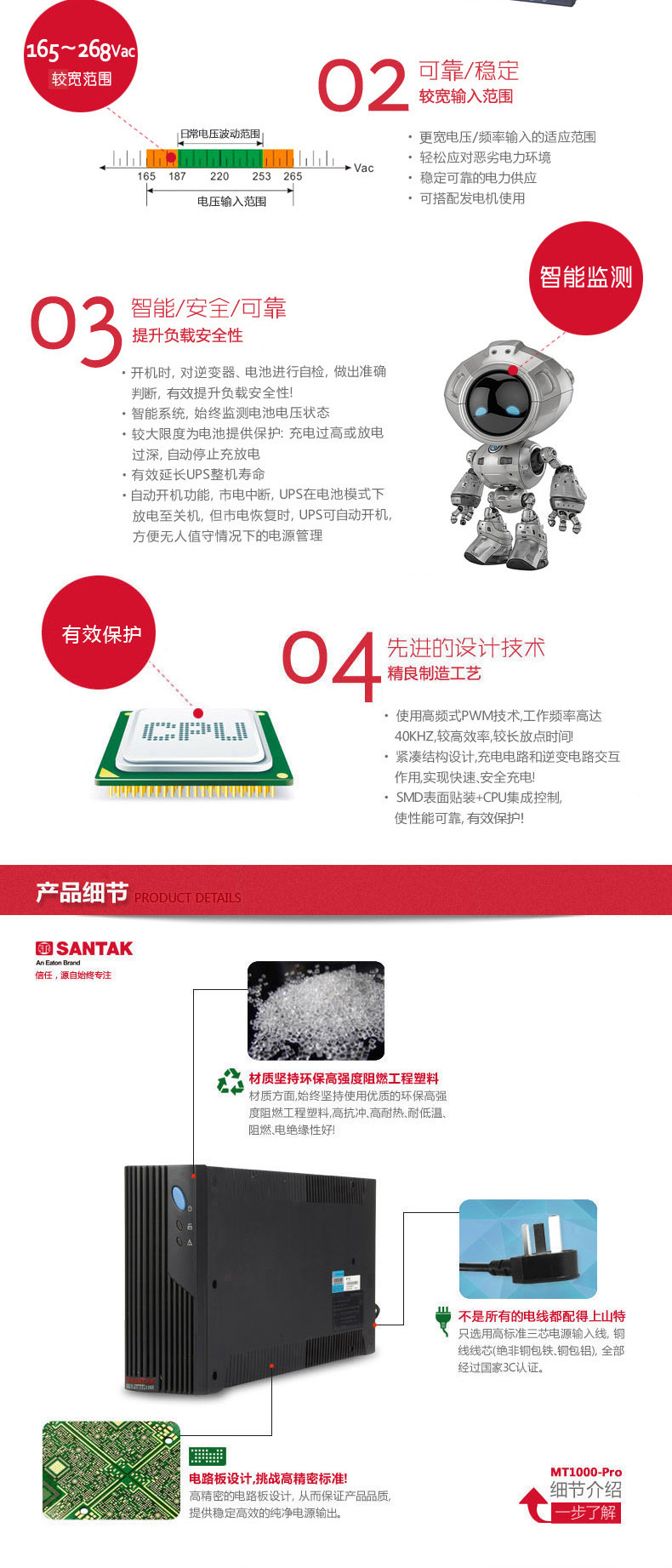 Shante UPS Непрерывное источник питания MT1000S-PRO 1000VA600W задержка питания 3 часа компьютерного напряжения