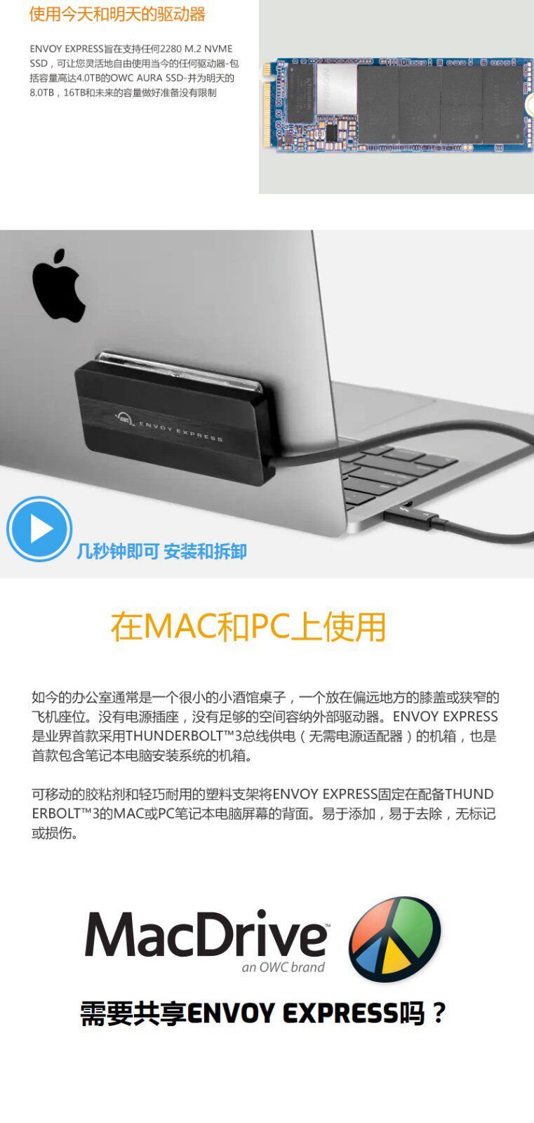 OWC M.2 Lightning Hard Disk Box Envoy Express Thunderbolt 3 M.2 NVME SSD Hard Disk Box