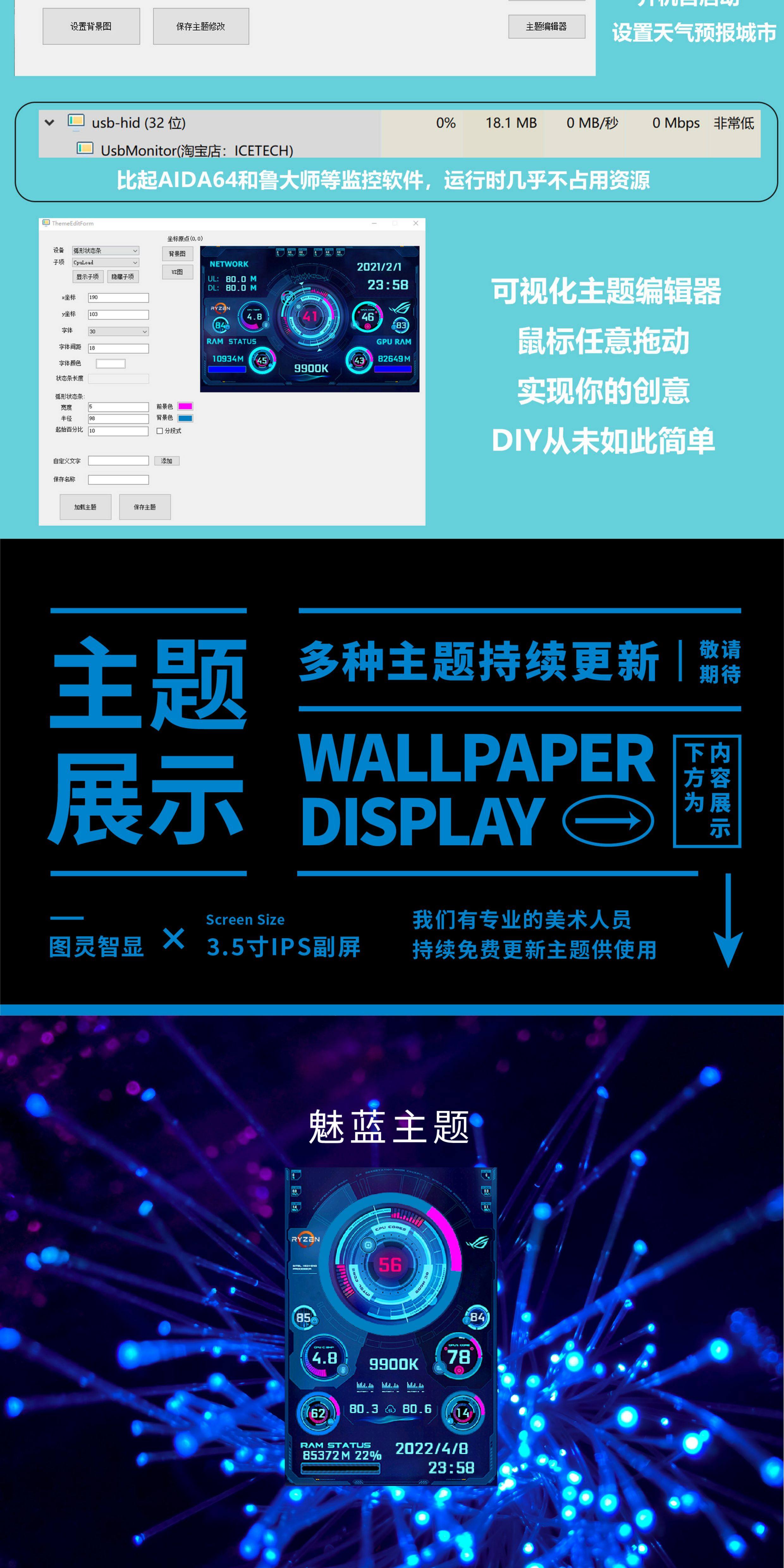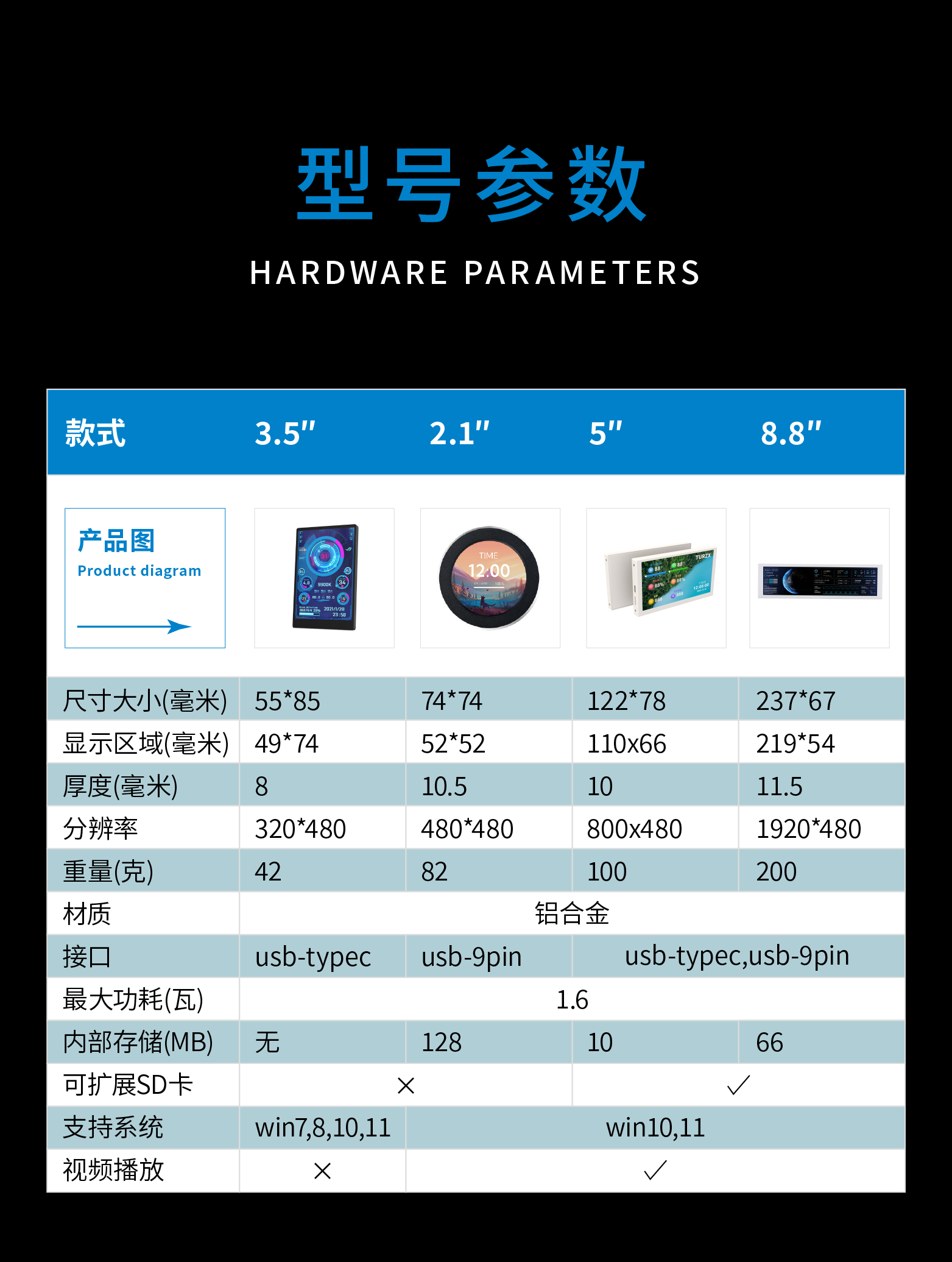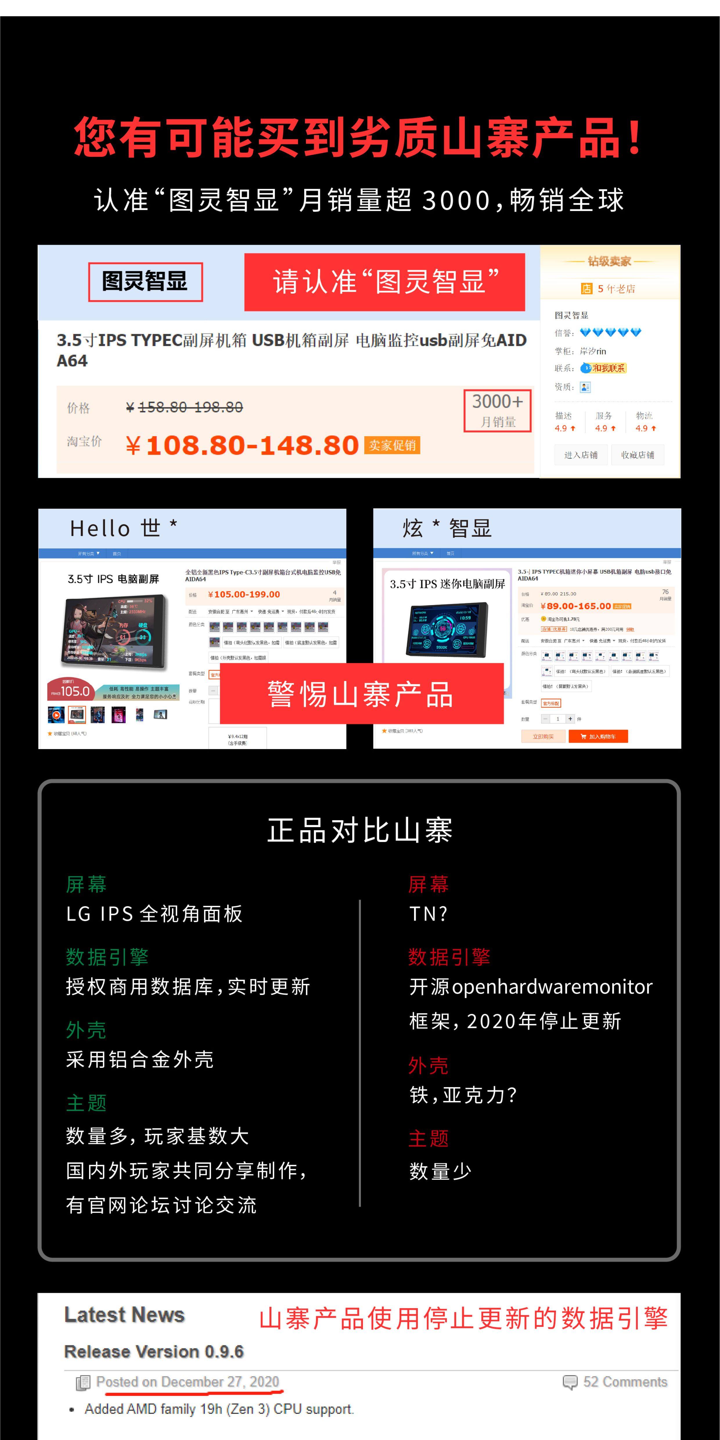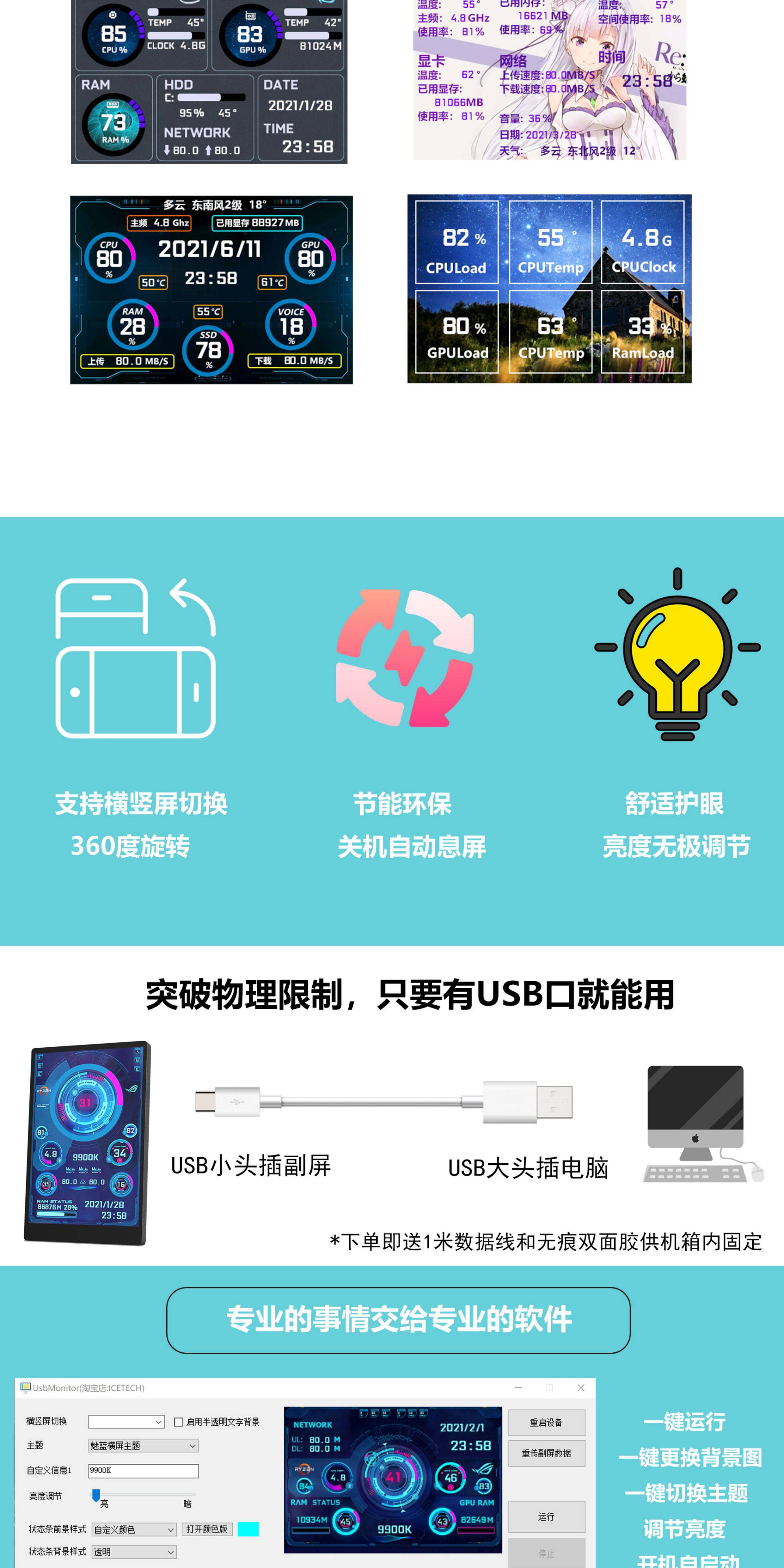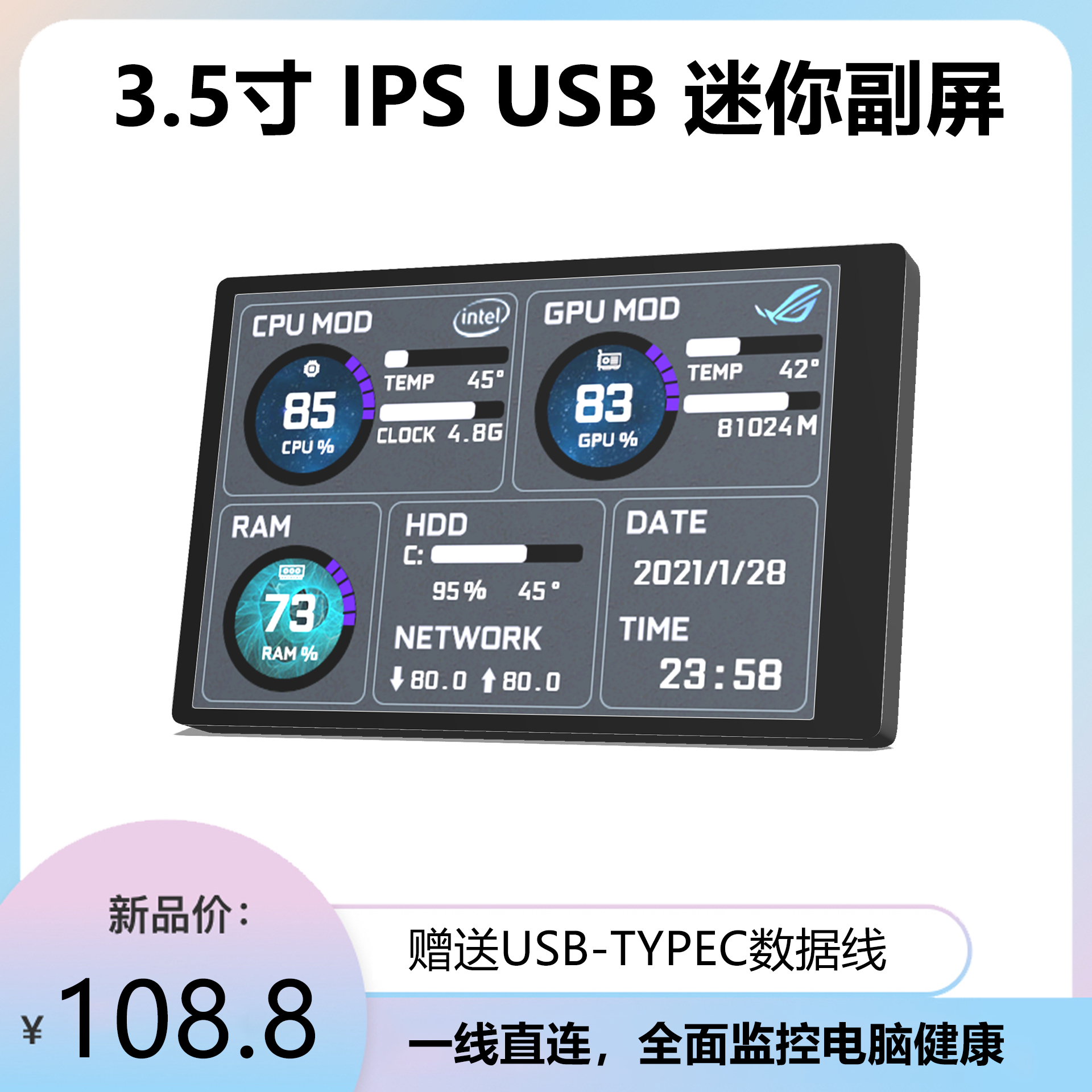 3,5-дюймовый дополнительный экран IPS TYPE-C, дополнительный экран USB для мониторинга компьютера, полностью алюминиевый материал, без AIDA64, для настольных компьютеров